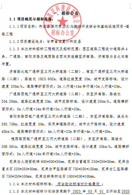 和政縣濱河?xùn)|區(qū)文化旅游開(kāi)發(fā)綜合體基礎(chǔ)設(shè)施項(xiàng)目-道路工程材料招標(biāo)公告