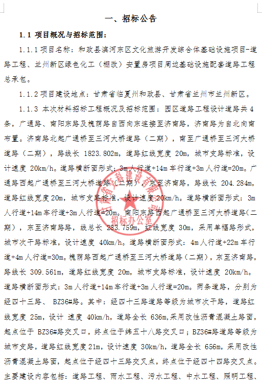 和政縣濱河?xùn)|區(qū)文化旅游開發(fā)綜合體基礎(chǔ)設(shè)施項(xiàng)目-道路工程、蘭州新區(qū)綠色化工(棚改)安置房項(xiàng)目周邊基礎(chǔ)設(shè)施配套道路工程總承包-招標(biāo)公告