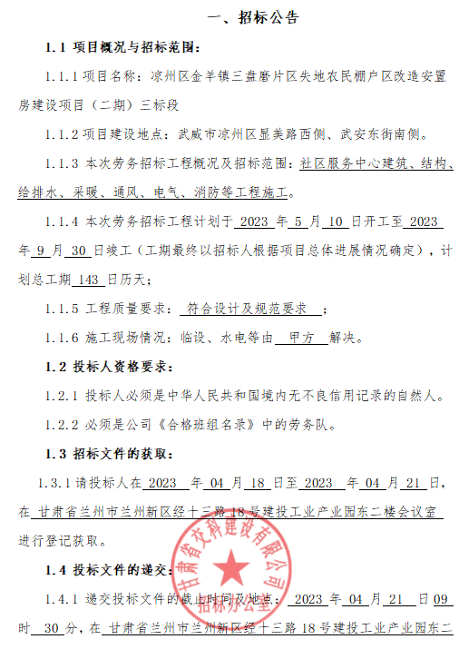 涼州區(qū)金羊鎮(zhèn)三盤(pán)磨片區(qū)失地農(nóng)民棚戶區(qū)改造安置房建設(shè)項(xiàng)目(二期)三標(biāo)段 社區(qū)服務(wù)中心勞務(wù)招標(biāo)公告