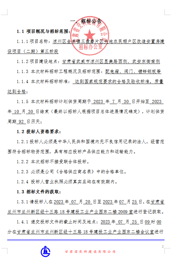 涼州區(qū)金羊鎮(zhèn)三盤磨片區(qū)失地農(nóng)民棚戶區(qū)改造安置房建設項目(二期)第三標段材料招標公告