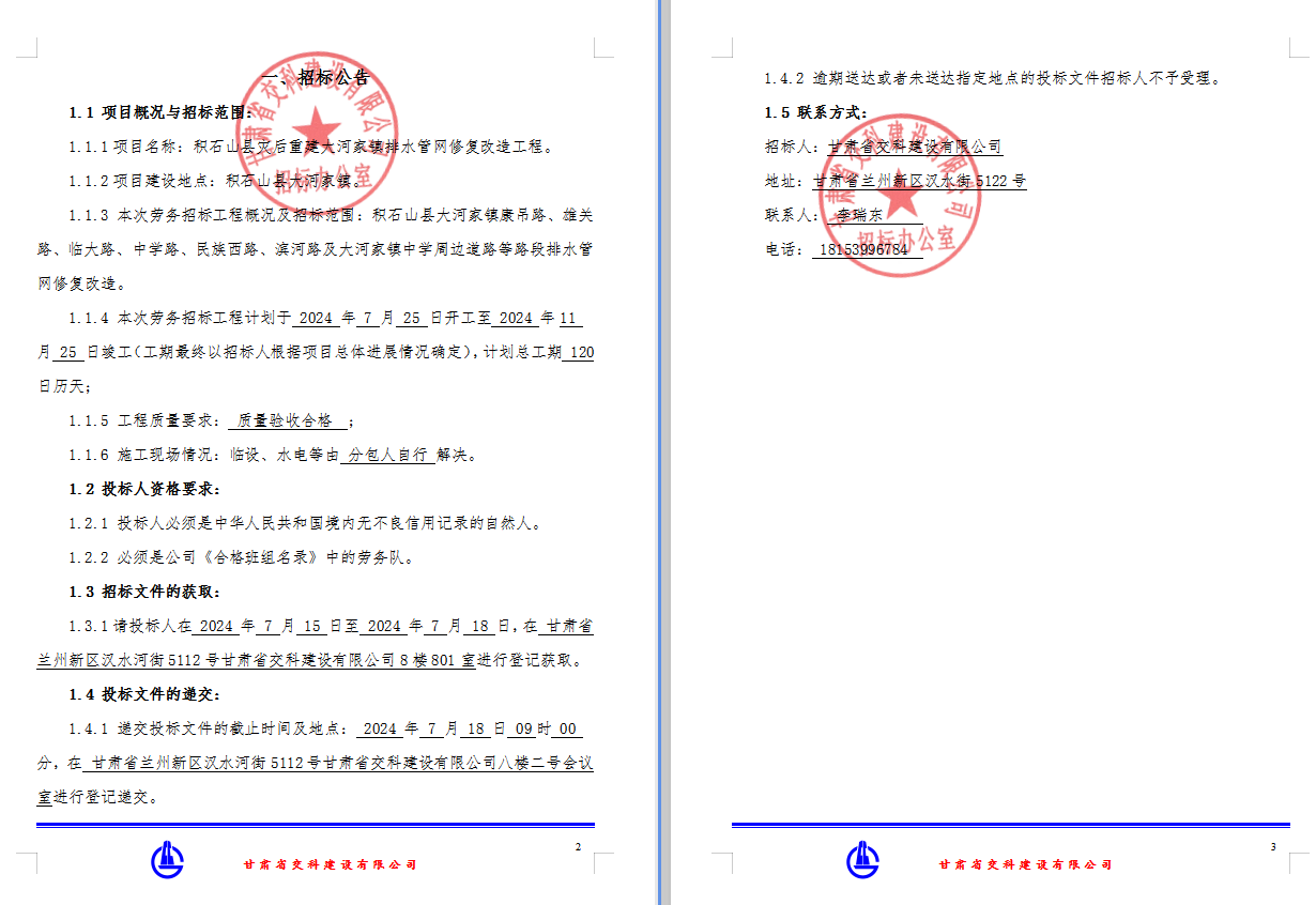 積石山縣災后重建大河家鎮(zhèn)排水管網修復改造工程-勞務分包招標公告