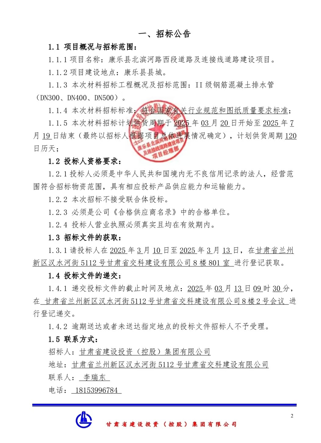 康樂(lè)縣北濱河路西段道路及連接線道路建設(shè)項(xiàng)目-材料招標(biāo)公告