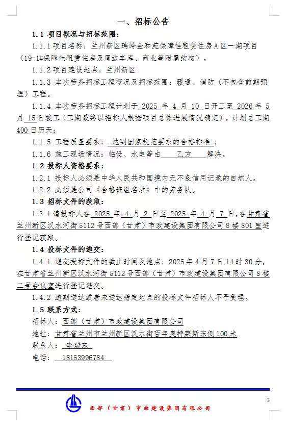 蘭州新區(qū)瑞嶺金和苑保障性租賃住房A區(qū)一期項(xiàng)目-19#-1#保障租賃住房及周邊車庫(kù)、商業(yè)等附屬結(jié)構(gòu)-暖通、消防勞務(wù)分包招標(biāo)公告