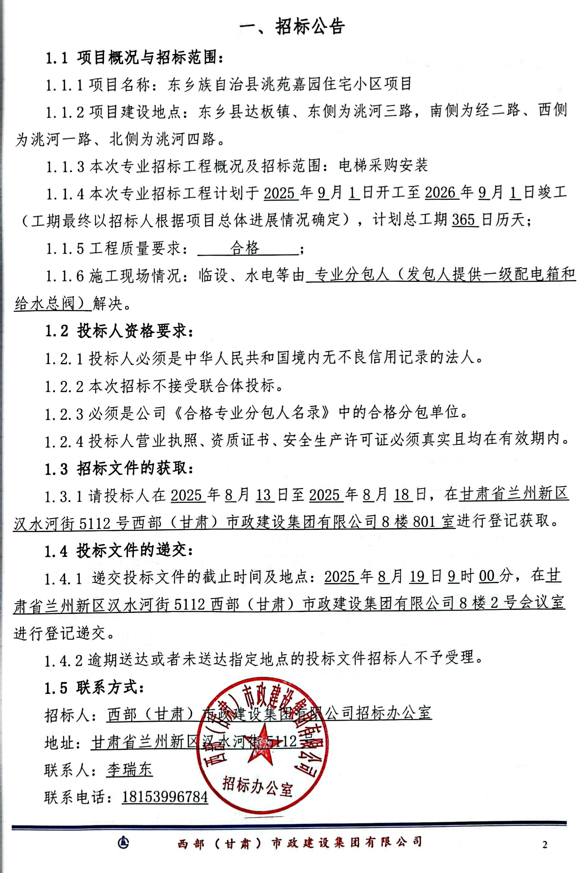 東鄉(xiāng)族自治縣洮苑嘉園住宅小區(qū)項(xiàng)目-電梯采購安裝-招標(biāo)公告